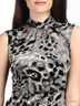 Детали: застежка на две пуговицы на воротнике-стойке, полочка декорирована оригинальными складками