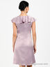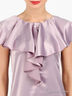 Детали: округлый вырез горловины, застежка на скрытую молнию на спинке, вытачки, ворот декорирован крупным воланом