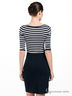 Детали: круглый вырез; рукав 3/4; отрезной лиф декорирован принтом - полоска; сзади шлица