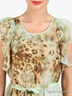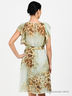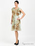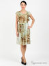Детали: округлый вырез горловины, короткий рукав, застежка на пуговицу на спинке, линия талии обозначена вставленной резинкой, по боковым швам швам пришиты шлевки, в комплекте поясок, принты