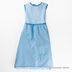 Элегантное пластье с расклешенным силуэтом. Верхний слой — сеточка. Двухслойный топ светлее юбки и отделен тонким поясом. Застежка сзади на скрытую молнию. Трехслойная юбка. Пройма рукавов, вырез горловины и поясок выполнены из сеточки темно-голубого цвета.