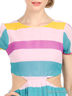 Детали: круглый вырез, короткие рукава, сзади застегивается на металлическую молнию, по бокам оригинальные разрезы