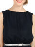 Детали: круглый вырез, без рукавов, сзади оригинальный вырез, застегивается на пуговицу, талия на резинке со шлевками и на регулируемом ремне
