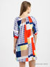 Яркое платье с оригинальным рисунком. Круглый вырез с разрезом и пуговицей спереди. Рукава 3/4. Широкий пояс можно носить как шарф. Прямой крой. Длина 88 см для размера 44.