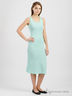 Стильное облегающее платье из хлопкового трикотажа с косым швом спереди и сзади. Без рукавов, покрой майки. Круглый вырез.