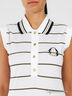 Детали: отложной ворот-стойка, застежка на четыре пуговицы на полочке, контрастные полоски с люрексом, декоративная вышивка на полочке