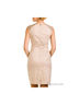 Платье приталенного кроя с округлым вырезом и кружевной вставкой на плечах и по бокам изделия.