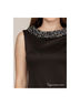 Платье приталенного покроя без рукавов с оригинальными кружевными вставками по вырезу горловины и юбке.