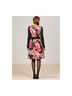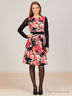 Платье расклешенного кроя с рисунком "цветы" и рукавами ажурной вязки.