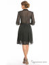 Великолепное платье прекрасно впишется в женский гардероб. Модель с рукавами 3/4 и фигурным вырезом горловины. Украшено изделие контрастным рисунком.