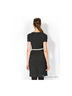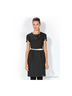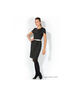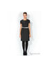 Платье приталенного кроя с короткими рукавами и эффектными складками на юбке спереди.