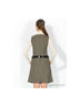 Платье немного расклешенного к низу кроя, без рукавов и оригинальным вырезом.