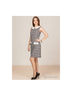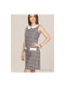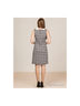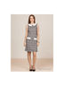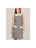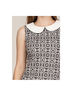 Платье прямого покроя с контрастным рисунком и однотонным воротничком и клапанами.