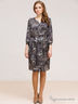 Платье с рукавами 3/4 и округлым вырезом горловины. Модель приталенного кроя выполнена из качественного материала привлекательной расцветки. Отличный вариант на каждый день. Спереди изделие декорировано застежкой на пуговицы.