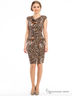 Платье приталенного покроя с короткими рукавами и округлым вырезом горловины. Модель выполнена из принтованной ткани контрастной расцветки. Отличный вариант на каждый день.