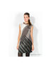 Платье приталенного кроя без рукавов с эффектным рисунком.