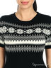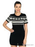 Очаровательное, эластичное жаккардовое платье с короткими рукавами и округлым вырезом горловины. Спереди два удобных накладных кармана. Ворот, рукава, верх карманов и низ изделия оформлены в рубчик. Платье украшено контрастной, узорной вязкой.