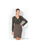 Стильное платье приталенного силуэта с отрезным лифом. V-образный вырез горловины с запахом, юбка с имитацией двубортной застежки. Застежка на молнию сзади. Лиф декорирован рисунком. Отлично подходит как для прогулок, так и для офиса.