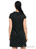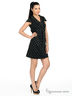 Платье женское из мягкого трикотажа средней плотности. Силуэт трапециевидный, позволяет скрыть недостатки фигуры. Вырез горловины дополнен элегантным воротником с пришитой большой пуговицей. На линии груди выполнены вытачки. Короткие рукава. Спереди встречная бантовая складка. Платье можно комбинировать с блузками.