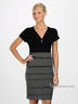 Мягкое трикотажное платье с коротким рукавом отлично подойдет как для офисной работы, так и для повседневной носки. Юбка, декорированная широкими рюшами, подчеркнет Вашу женственность, а широкий втачной пояс - Вашу фигуру.