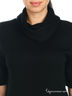 Великолепное вязаное платье с короткими рукавами и воротником хомут. Низ изделия и рукава окантованы в рубчик. Платье украшено стразой и вязаным узором белого цвета.