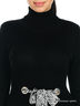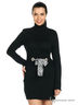 Элегантное платье приталенного силуэта, с длинным рукавом и воротником гольф. Изделие украшено декоративными отверстиями с легким шелковистым поясом.