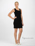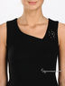 Коктейльное платье из плотного трикотажа. Без рукавов. Приталенный силуэт. Оригинально оформленная полочка. В дополнение к изделию идет металлическая брошь с крупными стразами.