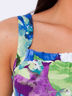 Детали: вырез горловины-каре присборен на резинку, широкий пояс на резинке