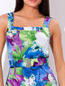 Детали: вырез горловины-каре присборен на резинку, широкий пояс на резинке