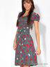 Детали: округлый вырез горловины, рукава-фонарики, пояс продет в шлевки, застежка на молнию на спине