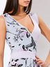 Детали: глубокое декольте с запахом, короткий рукав, втачной пояс, юбка дополнена складками