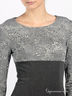 Строгое женское платье благородного серого цвета. Прямого силуэта. Лиф и юбка платья выполнены из тканей разной фактуры. Лиф отрезной из мягкого трикотажа, с завышенной линией талии. Грудь подчеркнута рельефными вытачками. Округлый неглубокий вырез горловины. Длинный прямой рукав. На спинке длинная застежка-молния. Юбка трикотажная, однотонная. Крой "с запахом". Пуговицы можно расстегнуть.