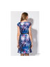 Яркое платье приталенного силуэта. Округлый вырез горловины с драпировкой, короткий рукав фонарик, застежка на молнию сзади. Стильный рисунок. Отличный вариант для прогулок и вечерних мероприятий.