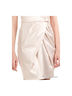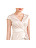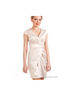Элегантное платье приталенного силуэта. V-образный вырез горловины, короткий рукав, втачной пояс с пряжкой, оригинальная драпировка. Отличный вариант для вечеринок и праздников.