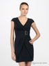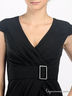Стильное женское платье темного серого цвета с эффектом "меланж". Основная ткань с эластаном, трикотажная, подклад шелковистый. Крой платья удачно подчеркивает талию и зрительно увеличивает грудь за счет драпировки на лифе. Короткие рукава. Глубокий вырез горловины. На спинке длинная застежка на молнию. спереди декоративный ремешок с пряжкой. От линии талии к низу изделия выполнены мягкие складки. Сзади разрез-шлица.