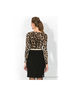 Детали: округлый вырез горловины, длинный рукав, отрезной контрастный лиф, декоративные складки