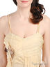 Детали: тонкие многорядные бретели; отрезной лиф дополнен простроченными складками; застегивается на молнию сзади; декоративные нашивки