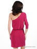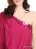 Детали: ассиметричный вырез; один рукав 3/4 с манжетой; талия посажена на резинку; декорировано пайетками