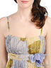 Детали: застегивается на молнию сбоку; тонкие бретели регулируются по длине; втачной пояс с декоративным цветком; оригинальным принт; вышивка