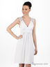 Детали: v-образный вырез горловины с запахом. Лиф присборен на втачной пояс, по боками изделия трикотажные ленты, завязывающиеся на спине, спинка декорирована кружевом