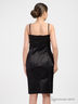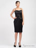 Платье приталенного покроя без рукавов на тонких бретелях. Лиф модели с фигурным вырезом. Спереди изделие украшено декоративным элементом.