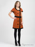 Платье приталенного покроя с округлым вырезом горловины. Короткие рукава и веселая расцветка изделия. Спереди модель декорирована пуговицами.
