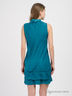 Платье свободного покроя с короткими рукавами. Низ изделия декорирован воланами. Сперели горловины модели декорирована завязками. Отличный вариант как для торжества, так и на каждый день.