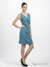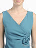 Нарядное платье прямого кроя из тонкой неэластичной ткани с тонкой шелковистой подкладкой. Застегивается на молнию на спине. V-образный вырез горловины с запахом. На полочке выполнены декоративные складки с розой из шелковистой ткани.