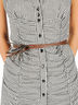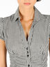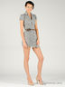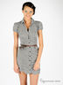 Приталенное хлопковое платье. Отложной воротник на стойке. Глубокий вырез. Застегивается спереди на пуговицы. Короткие рукава-фонарики, край рукава посажен на резинку. Присборенная юбка. В комплект входит тонкий ремешок.