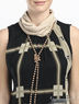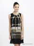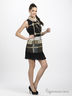 Платье из тонкого шифона с трикотажной подкладкой прямого кроя. Широкий ворот-гольф дополнен бусами.