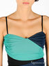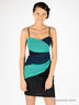 Приталенное эластичное платье. Тонкие регулируемые бретельки. Верх спинки посажен на резинку. Застегивается сбоку на молнию. Драпировано эластичной ажурной тканью.