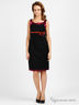 Великолепное платье-футляр из плотной ткани с отделкой из сатина. Вырез горловины - каре. Отрезной лиф декорирован оригинальным пояском с ярким цветком. Вырез горловины, проймы рукавов и подол выполнены из контрастной ткани. Изящный вариант для настоящей леди!