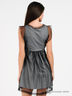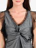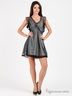 Детали: v-образный вырез с рюшами, без рукавов, по бокам украшено воланами, сбоку застегивается на молнию