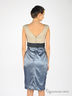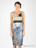 Отрезное приталенное платье. Лиф выполнен из плотного материала с шелковистой подкладкой, низ платья из шелковистого лоснящегося материала с принтом. Застегивается на молнию сзади.